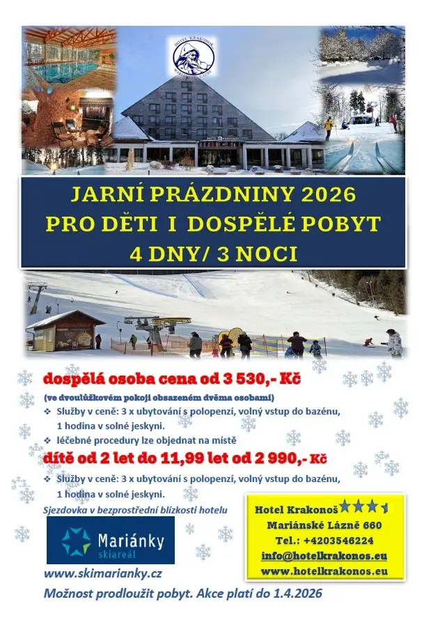 Jarní prázdniny 2026 nejen s lyžováním v Mariánských Lázních